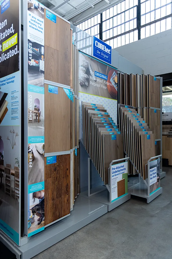 - In designing the new display, MAG worked with Shaw to standardize on one sample size. This made the logistics of adding or dropping skus as their mix evolved easy for Shaw and their dealers. Dealers could now place samples in the best arrangement for their region.