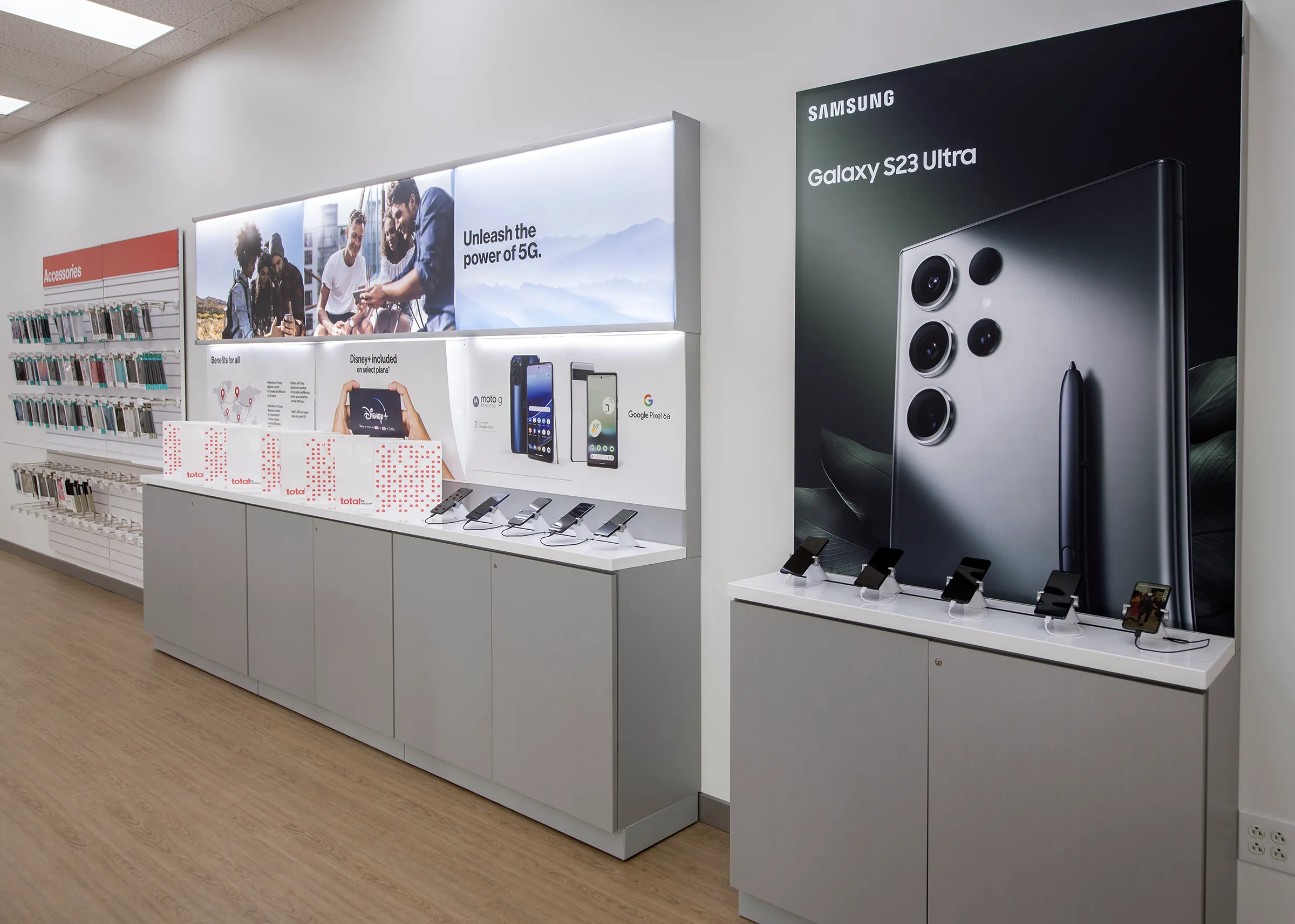 Verizon’s mandate for MAG was clear yet demanding – adapt existing fixtures in over 100 stores while adhering to Verizon’s exacting specifications. The transition from TracFone’s stores to the new Total by Verizon brand demanded a radical visual and experiential overhaul. MAG’s sales and design teams collaborated with Verizon to craft an immersive, vibrant store ambiance. Simultaneously, MAG’s engineers embarked on developing a generation 1 fixture package for the initial 100 stores, with subsequent tweaks for the next 650 outlets to streamline shipping and installation.