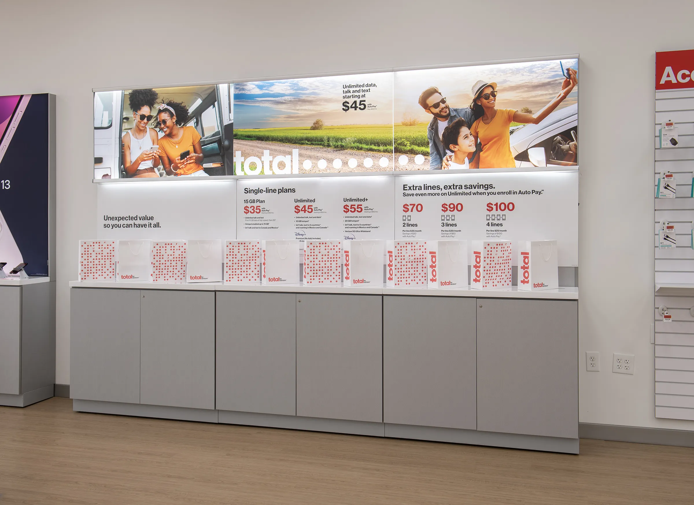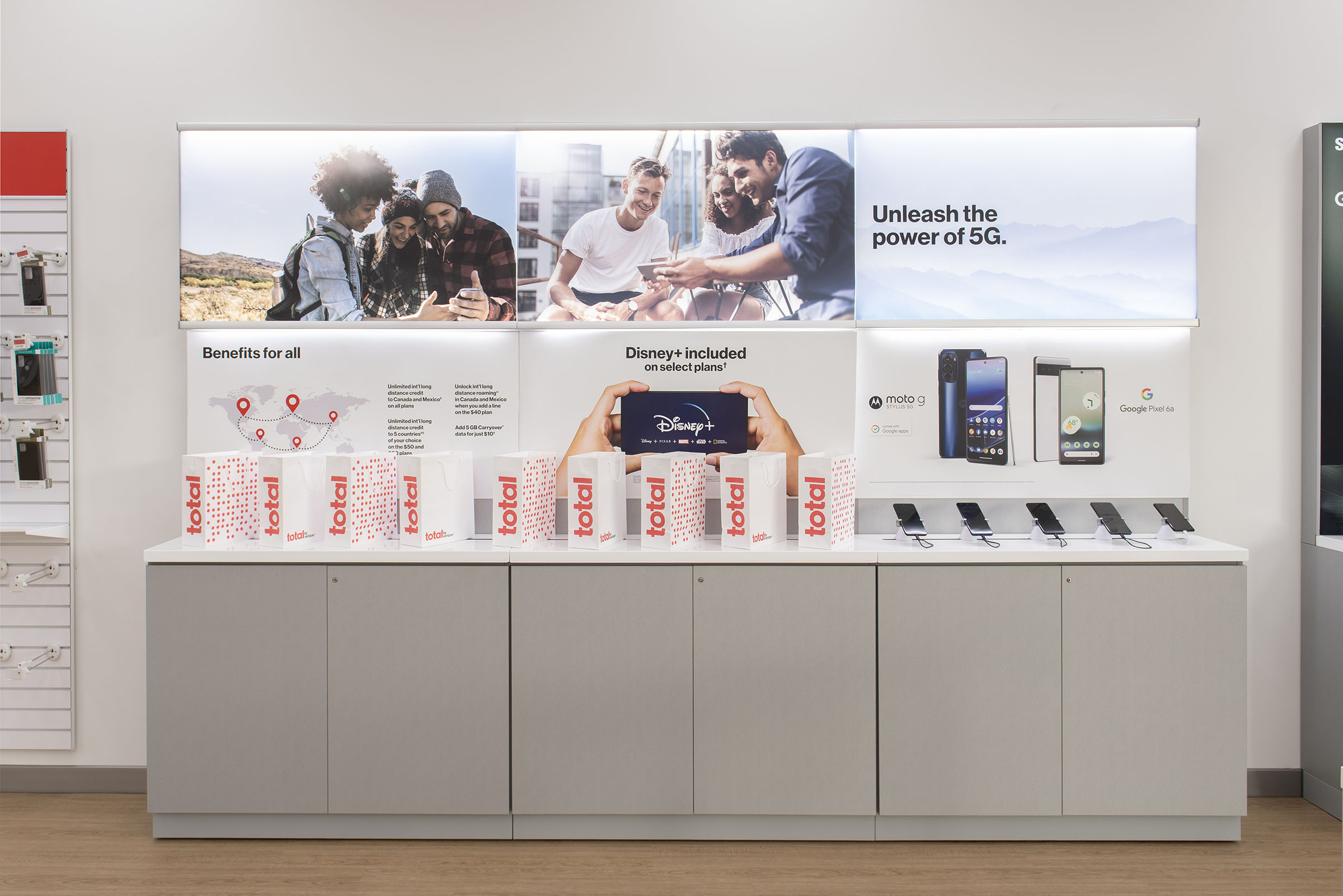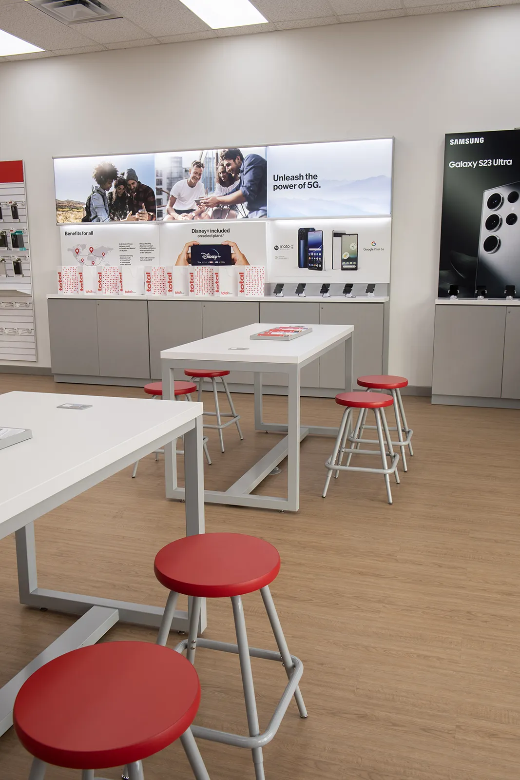 Verizon’s mandate for MAG was clear yet demanding – adapt existing fixtures in over 100 stores while adhering to Verizon’s exacting specifications. The transition from TracFone’s stores to the new Total by Verizon brand demanded a radical visual and experiential overhaul. MAG’s sales and design teams collaborated with Verizon to craft an immersive, vibrant store ambiance. Simultaneously, MAG’s engineers embarked on developing a generation 1 fixture package for the initial 100 stores, with subsequent tweaks for the next 650 outlets to streamline shipping and installation.